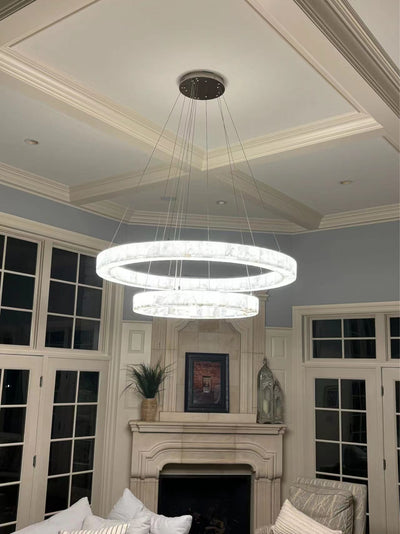 Crafted from natural alabaster, this double-ring chandelier glows with soft, cloud-like light. Its gentle translucence brings warmth and calm to any space — a perfect blend of modern elegance and timeless beauty.